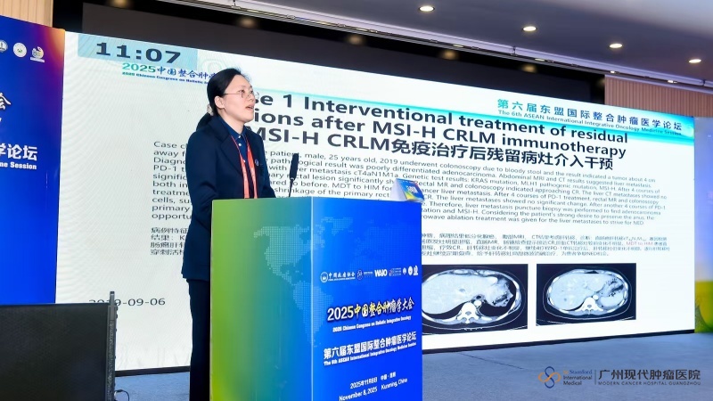 Professor Ma Xiaoying, a Minimally Invasive Oncology Expert from Modern Cancer Hospital Guangzhou, presented on New Comprehensive Treatment Strategies for CRLM and Case Studies, delivering her analysis through representative cases. The presentation demonstrated the innovative applications and outcomes of personalized immunotherapy strategies in the treatment of colorectal cancer liver metastases.