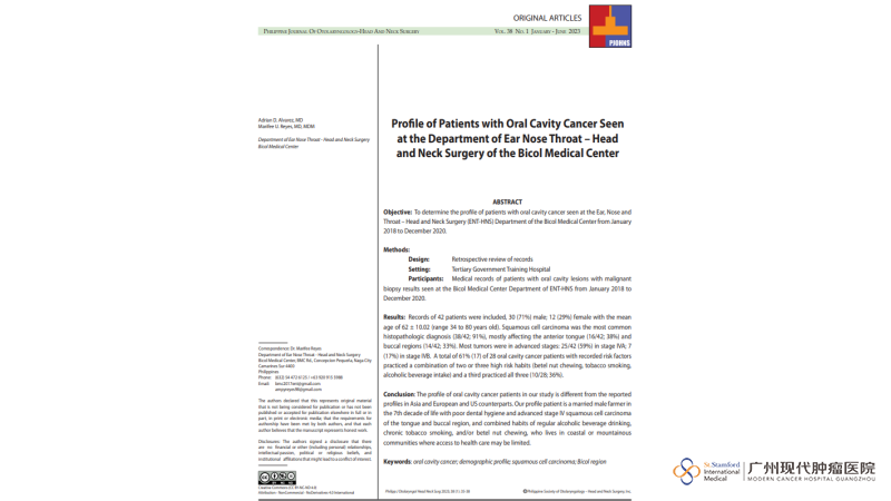 As one of the countries with a high incidence of oral cancer in Southeast Asia, the Philippines' experience provides important lessons for regional prevention and control. Two clinical studies from Bicol Medical Center and Mariano Marcos Memorial Hospital show that oral cancer in the Philippines is characterized by high incidence, clustering of high-risk behaviors, late diagnosis, and low survival rates. The study from Bicol Medical Center, which published in the Philippine Journal of Otorhinolaryngology-Head and Neck Surgery, showed that between 2018 and 2020, 71% of oral cancer patients treated at the hospital were male, with an average age of 62 years. Squamous cell carcinoma accounted for 91%, with lesions mainly distributed in the anterior tongue and buccal region. More alarmingly, most patients were already at an advanced stage at the time of diagnosis, with stage IVA and IVB accounting for as high as 76%. Among patients with recorded risk factors, 61% had two or three high-risk habits simultaneously: betel nut chewing, smoking, and alcohol consumption, highlighting the importance of lifestyle interventions.