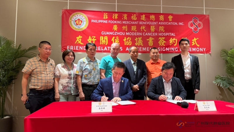 On March 11, 2026, the signing ceremony of the friendly cooperation agreement between Modern Cancer Hospital Guangzhou and FOOKING MERCHANT BENEVOLENT ASSOCIATION, INC. was held in Manila, Philippines. Mr. He Langbing, Vice President and Director of the International Affairs Department of Modern Cancer Hospital Guangzhou, and Mr. Wen Yiming, President of FOOKING MERCHANT BENEVOLENT ASSOCIATION, INC., signed the cooperation agreement on behalf of their respective organizations, jointly witnessing this significant moment.