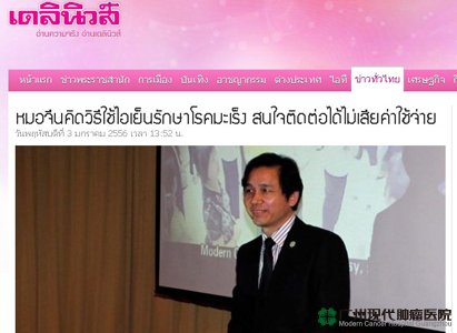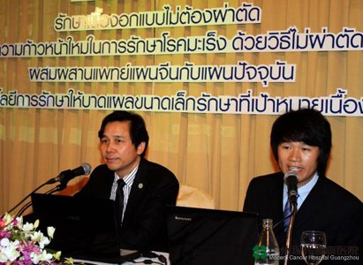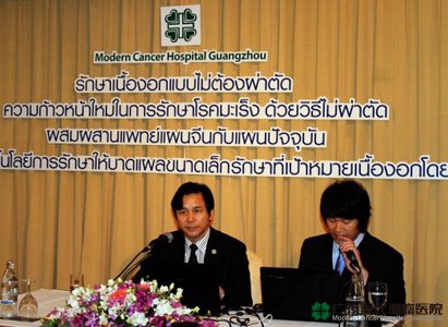 วันนี้ (3 ม.ค.) ที่โรงแรมดิเอมเมอรัลด์ มร.เผิงเสี่ยวชื่อ หัวหน้าคณะแพทย์รพ.มะเร็งสมัยใหม่กวางโจว สาธารณะรัฐประชาชนจีน เปิดเผยว่า เพื่อเฉลิมฉลองความสัมพันธ์ทางการทูต”ไทย-จีน”เป็นปีที่ 37 จึงจัดทำโครงการแลกเปลี่ยนความเห็นเชิงวิชาการด้านการแพทย์ 2 ประเทศ โดยเฉพาะการรักษามะเร็ง เพื่อยกระดับความร่วมมือทางการแพทย์ให้แน่นแฟ้นยิ่งขึ้น โดยคณะแพทย์รพ.มะเร็งสมัยใหม่กวางโจว ได้ค้นพบวิธีการรักษาแบบใหม่ด้วยการผสมผสานการแพทย์จีนเข้ากับการแพทย์แผนปัจจุบัน โดยใช้ความเย็นเข้ามาช่วยลดการแพร่กระจายของเซลมะเร็ง โดยการฝังแร่ไอโอดีนกัมมันตภาพ 125 รวมถึงการใช้เทคนิคการผ่าตัดที่ทำให้เกิดบาดแผลเล็ก สามารถยับยั้งไม่ให้เนื้องอกเติบโตและลุกลามจนเป็นอันตรายต่อชีวิตได้ จากสถิติผู้ป่วยที่เข้ารับการรักษาล้วนแต่มีสุขภาพดีขึ้น หากรักษาและดูแลผู้ป่วยอย่างใกล้ชิด โอกาสที่จะรักษาเซลมะเร็งให้หายขาดมีความเป็นไปได้สูง