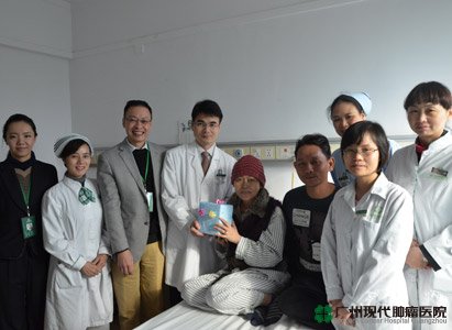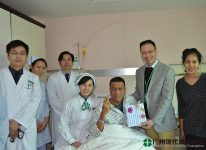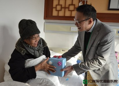 ตอนช้าววันที่24ธันวาคมปี2555เป็นวันคริสต์มาสอีฟ ท่านหวางหวยจงคณบดีโรงพยาบาลมะเร็งสมัยใหม่กวางโจวเป็นตัวแทนของพนักงานทั้งโรงพยาบาล ไปเยี่ยมชมผู้ป่วยในแต่ละท้องที่ เมื่อคุณหวาง คณบดีของโรงพยาบาลมะเร็งสมัยใหม่กวางโจว เข้าไปห้องป่วย ผู้ป่วยกับครอบครัวของพวกเขาไม่สามารถอดได้ที่จะแสดงความประหลาดใจเมื่อพวกเขาสังเกตเห็นคุณหวางถือขอขวัญคริสต์มาสมา ผู้ป่ายหลายคนยังล้อเล่นว่า 'Santa Claus'ส่งของขวัญมาให้แล้ว
