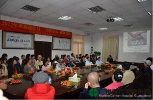 เช้าวันที่24 เดือนกุมภาพันธ์ พ.ศ 2555 ทางโรงพยาบาลมะเร็งสมัยใหม่กวางโจวได้มีการจัดกิจกรรมส่งเสริมสุขภาพวันมะเร็งโลกปี2012 โดยจัดกิจกรรมที่โรงพยาบาลกวางโจว ณ อาคารบริหารโรคมะเร็งในห้องประชุมชั้นสองซึ่งได้ประสบความสำเร็จ