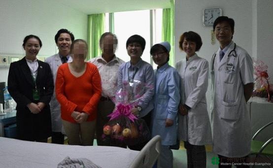 ช่วงเช้าของวันที่ 9 เมษายน ผู้นำทั้งหกท่านของโรงพยาบามะเร็งสมัยใหม่กว่างโจวได้มาที่ห้องคุณหลิวเพื่อมอบกระเช้าผลไม้และขอบคุณคุณหลิวที่ไว้วางใจการปฏิบัติงานของเจ้าหน้าที่พยาบาล อวยพรให้กำลังใจแก่คุณหลิว อีกทั้งให้ความเชื่อมั่นในการเอาชนะมะเร็งเพื่ออนาคตที่สดใส ครอบครัวของคุณหลิวพร้อมด้วยเจ้าหน้าที่พยาบาลได้ถ่ายภาพหมู่ด้วยกัน คำชื่นชมจากผู้ป่วยนั้น เป็นดั่งแรงขับเคลื่อนที่ดีต่อโรงพยาบาล เป็นพลังงานเพื่อเดินอยู่บนหนทางอันยาวไกลในการรักษามะเร็ง