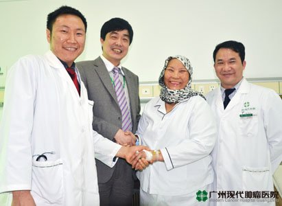คุณโจวซื่อจงไปถึงโรงพยาบาลมะเร็งสมัยใหม่กว่างโจวเมื่อวันที่ 22 ตุลาคม 2011 หลังจากตรวจ CT พบว่ามะเร็งเต้านมด้านขวามีขนาด 5x6 ซม.โรงพยาบาลมะเร็งสมัยใหม่กว่างโจวจึงได้กำหนดว่าจะใช้วิธีการรักษาบูรณาการแบบบาดแผลเล็กรักษาเธอ ครอบครัวของคุณโจวซื่อจงเห็นว่าโรงพยาบาลมะเร็งสมัยใหม่กว่างโจวจะใช้วิธีหลากหลายที่มีประสิทธิภาพมารักษาโรคมะเร็ง ซึ่งแตกต่างกับโรงพยาบาลเวียดนามที่ใช้เพียงวิธีเดียว จึงกำชับคุณโจวซื่อจงต้องให้ความร่วมมือกับการรักษาของโรงพยาบาลอย่างเต็มที่