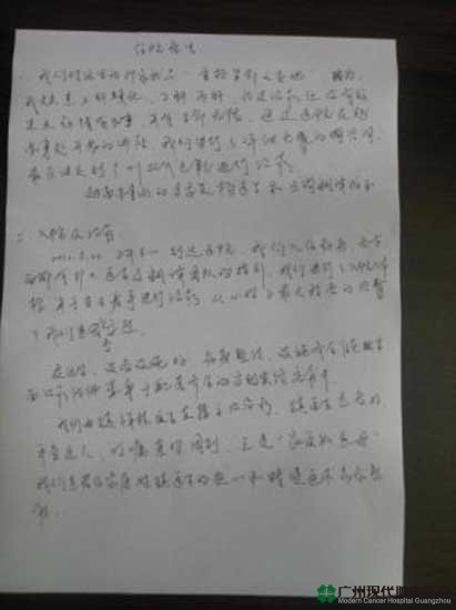 มาถึงต่างด้าว เจอกับสิ่งแวดล้อมที่แปลกหน้า แต่ได้รับความช่วยเหลือที่อบอุ่น หลังจากคุณเหวินกับภรรยามาถึงโรงพยาบาลมะเร็งสมัยใหม่กว่างโจว เขาสองคนได้เข้าพักห้องรักษาแบบไฮโซที่สะอาดสะอ้านและมีเครื่องใช้สอยที่ครบถ้วน ได้รับการดูแลที่ดีจากหมอ นางพยาบาลและทีมล่ามไม่ว่าในด้านการดำรงชีวิตหรือการรักษาพยาบาล ซึ่งทำให้เขาสองคนรู้สึกซาบซึ้งใจมาก