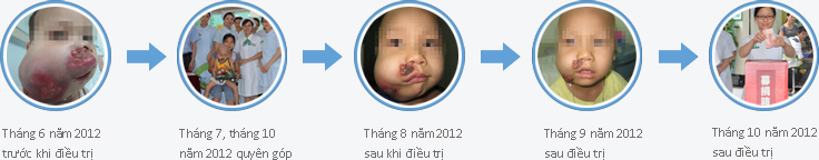 Bệnh viện Ung bướu Hiện đại Quảng Châu nhanh chóng tập hợp nhóm chuyên gia, tiến hành kiểm tra toàn diện cho bé Đa, cuối cùng đi đến kết luận bé bị mắc bệnh sarconma cơ vân toàn bộ phần má bên phải. Do tuổi còn quá nhỏ, đây lại thuộc dạng bệnh sarcoma, bệnh đã phát triển đến giai đoạn 3, không thể tiến hành phẫu thuật cắt bỏ được nữa. Sau khi các chuyên gia thảo luận và quyết định sẽ dùng phương pháp hóa trị xanh. Sau lần điều trị thứ nhất, bệnh của bé Đa đã có những biến chuyển rõ ràng, khối u thu nhỏ thấy rõ, có thể mở 1/3 miệng và có thể ăn một ít thức ăn cắt nhỏ, điều này đã giúp bố mẹ bé nhìn thấy tia hy vọng lớn lao để điều trị cho bé.